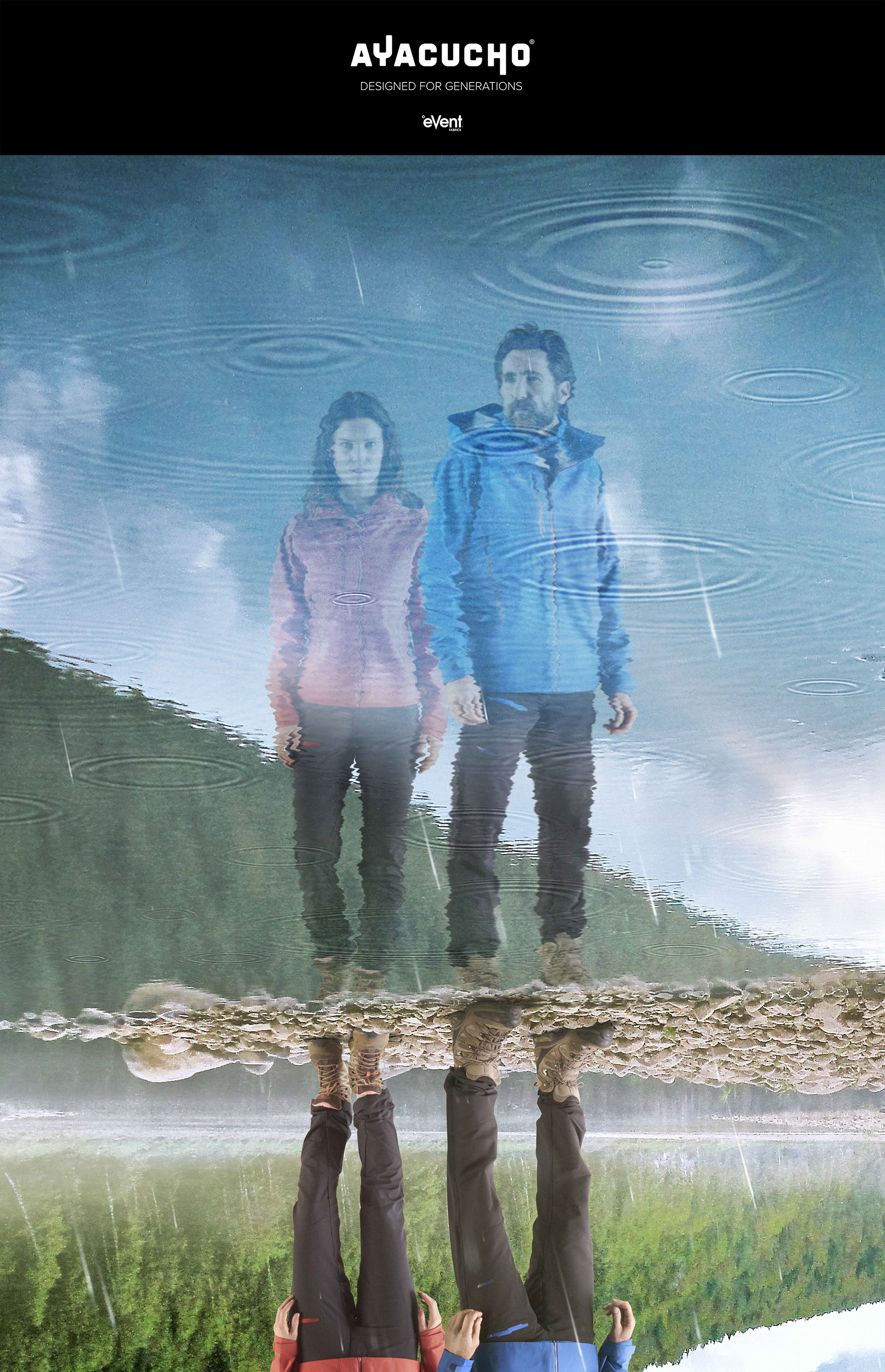 To launch a new range of hi-tech rain jackets of Ayacucho, we showed their best feature in an original print campaign. The jackets were shot outdoors in the rain, only visible in a puddle or lake reflection. Agency: Head Office